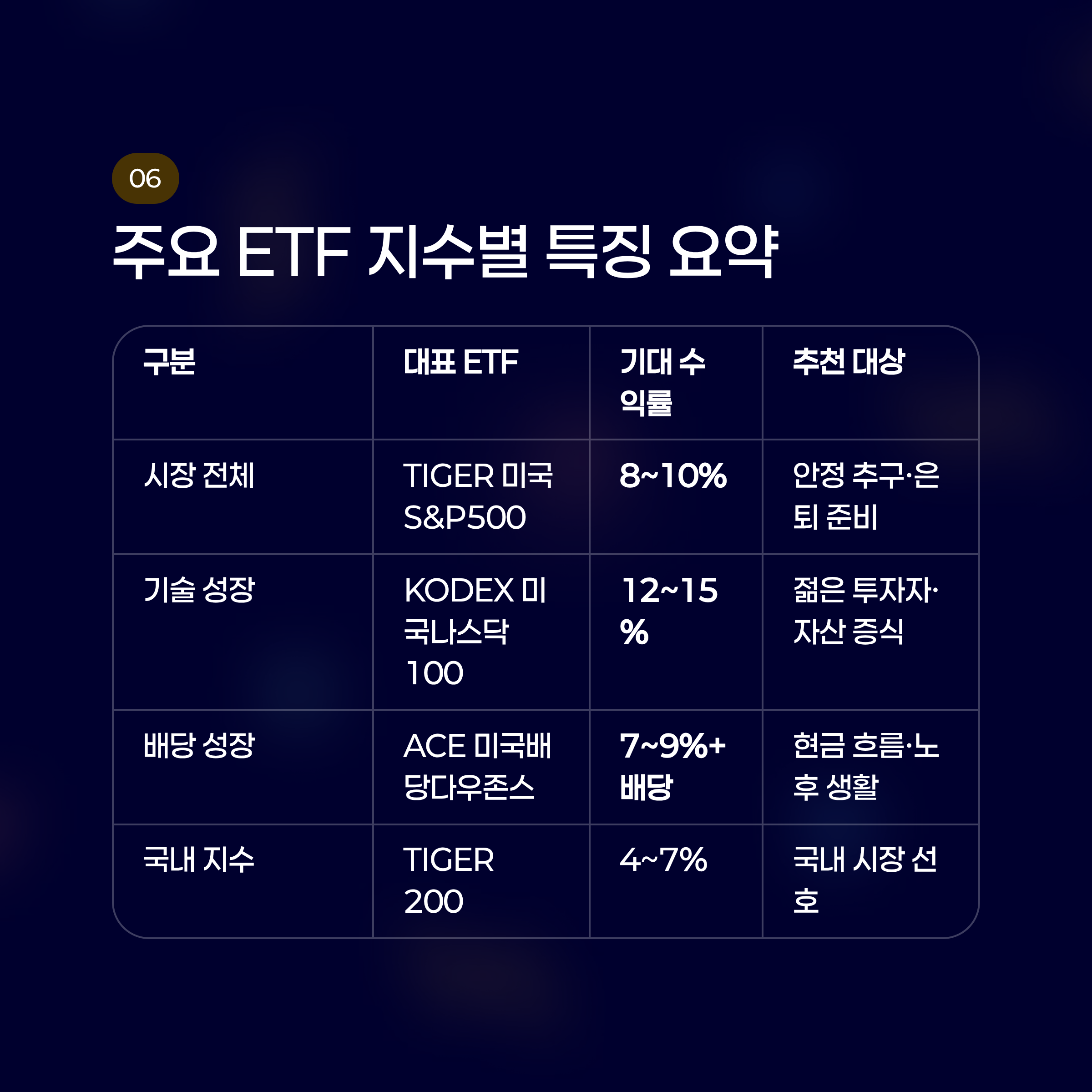 📊 주요 ETF 지수별 특징 요약표