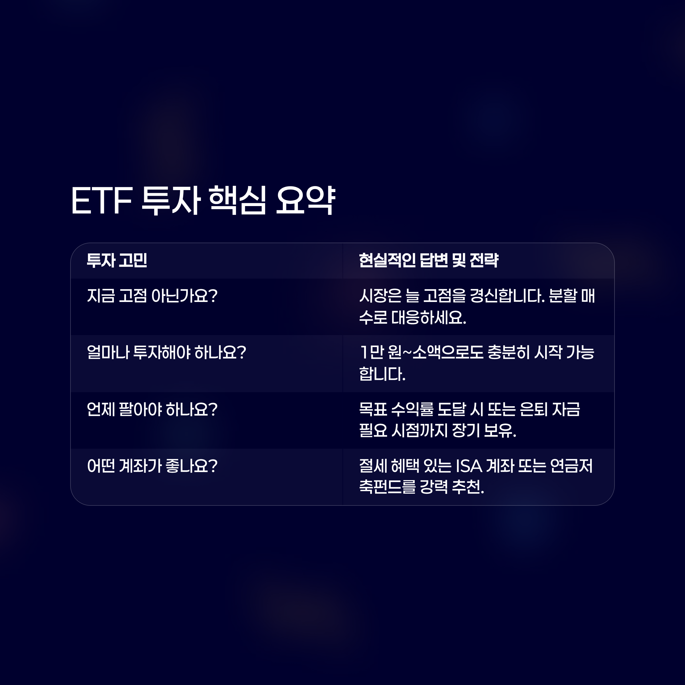 - 💡 ETF 투자 핵심 요약표